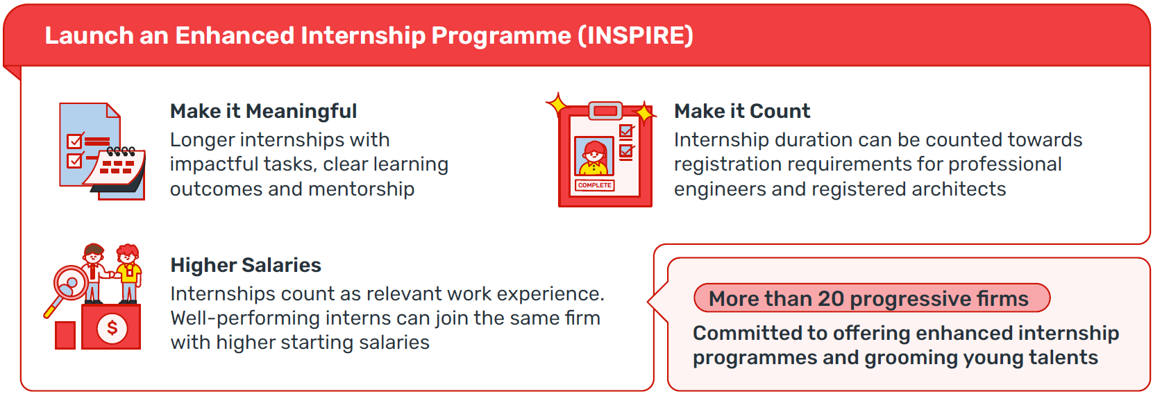 Offered by over 20 progressive BE firms who are committed to grooming young talents, INSPIRE is an enhanced internship programme spanning 30 weeks, structured to help you develop key technical and soft skills. It will also feature dedicated mentors to guide you in areas such as career development and corporate expectations.